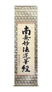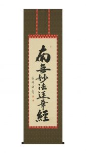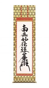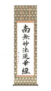 松波祥堂 日蓮名号 尺五立 60,500円(税込価格) 「妙法蓮華経」とは法華経を指します。「法華経の教えに帰依する」という意味です。 主に日蓮宗(緒派含む)でお唱えします。 流麗に書き、清潔感を表現しています。 |